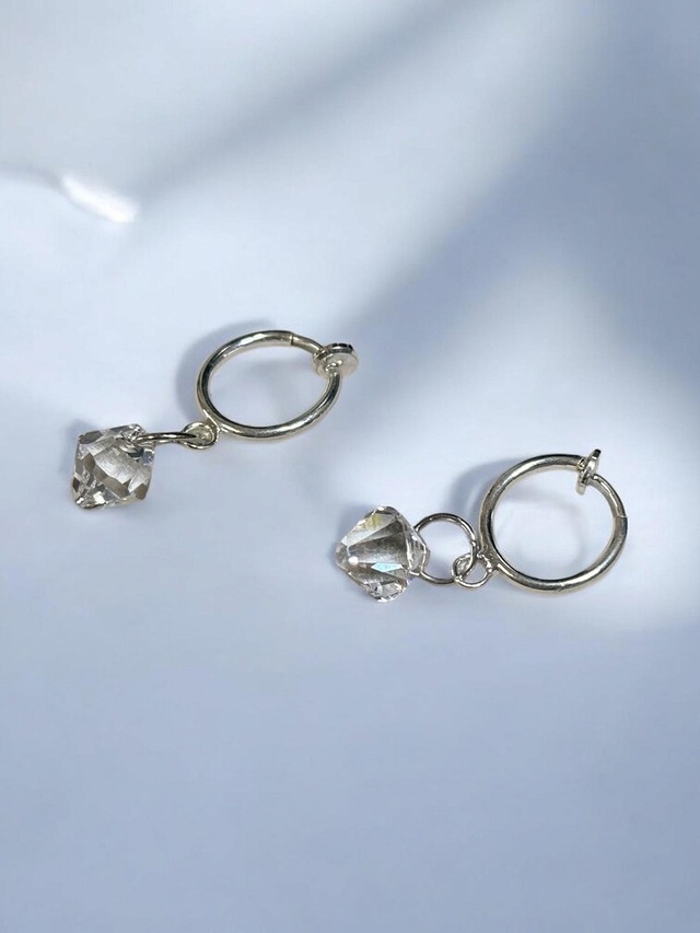 【リング形ノンホールピアス/挟むタイプのイヤリング】 シルバー×クリア 【1粒デザイン】