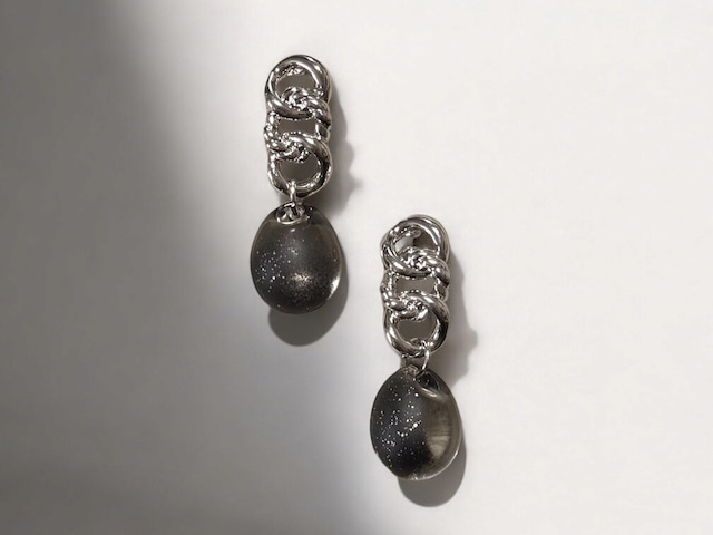 【デザインピアス/サージカルステンレス316】 シルバー×グレー 【ぷっくりドロップ】 キャッチタイプ