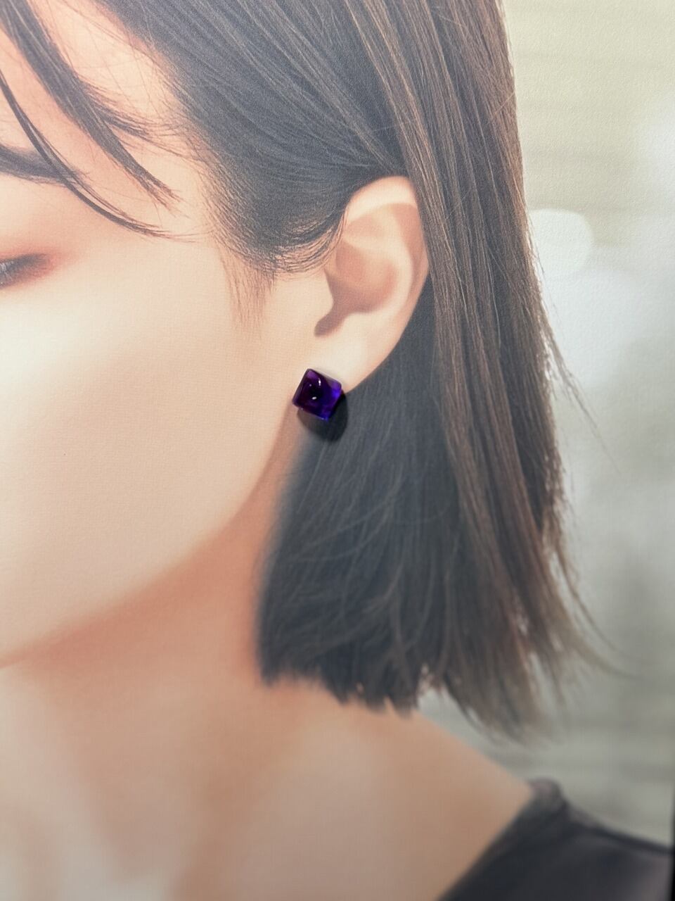 【ピアス/サージカルステンレス316】 波なみスクエア 【オーロラ原色パープル】 × シルバー金具 (キャッチタイプ)