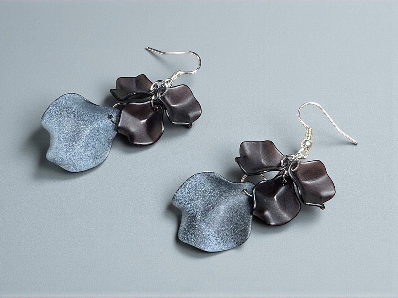 シルバー【ピアス(イヤリング)】 花びら ブラック&ホワイトマーブル (各種金具交換可)