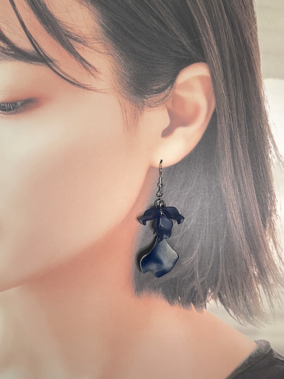 シルバー【ピアス(イヤリング)】 花びら ブルー&ホワイトマーブル (各種金具交換可)