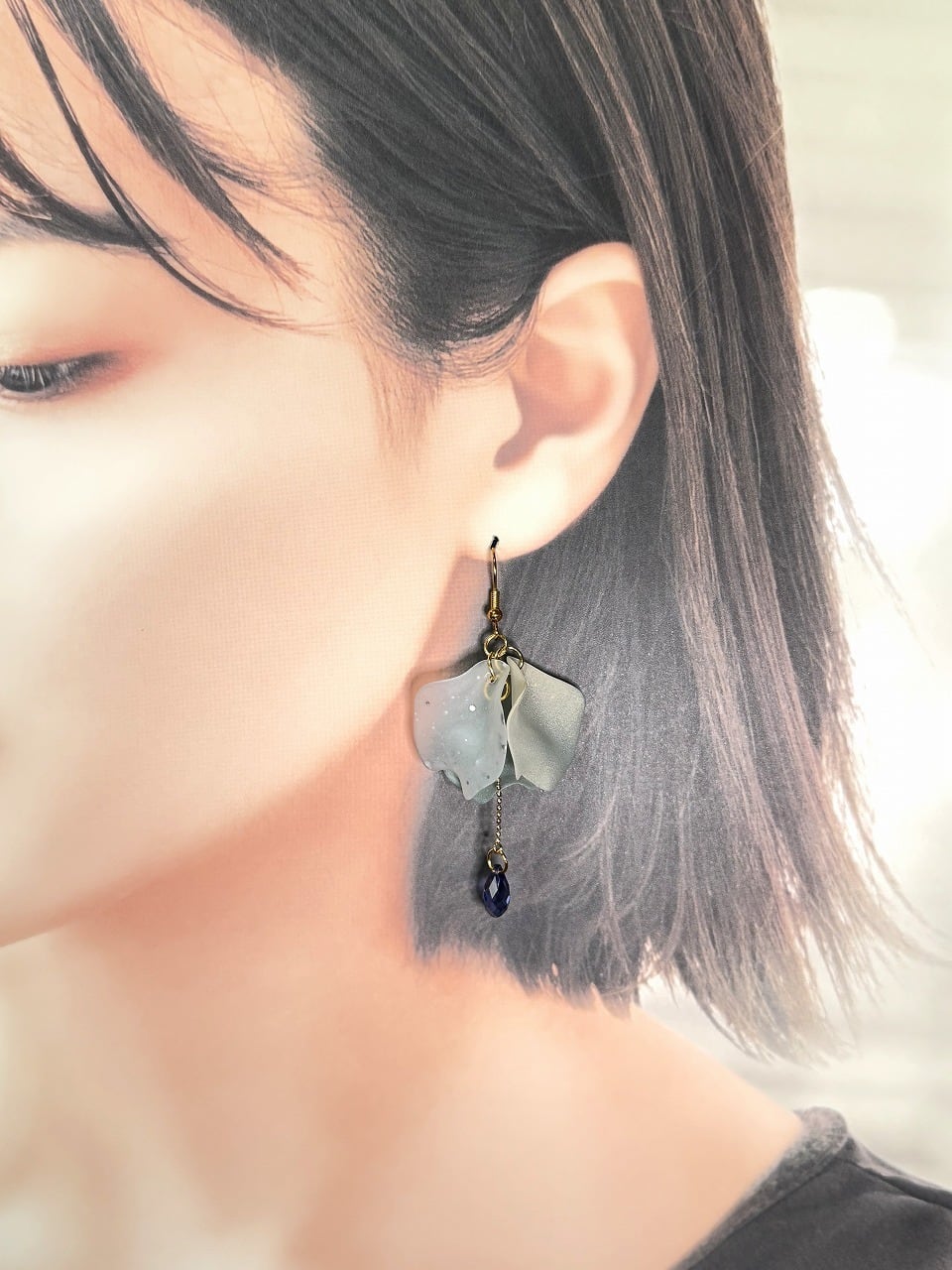 ゴールド【ピアス(イヤリング)】 花びら ミントグリーンマーブル (各種金具交換可)