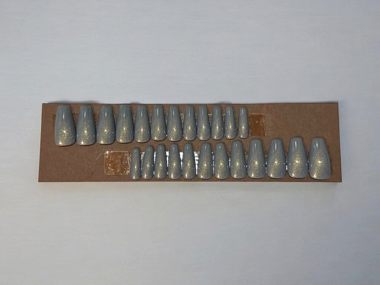 セミオーダータイプ【ネイルチップ】 ワンカラーネイル 【ゴールドパール入りくすみブルー】 (見本:バレリーナミディアム/チップの形選べます)