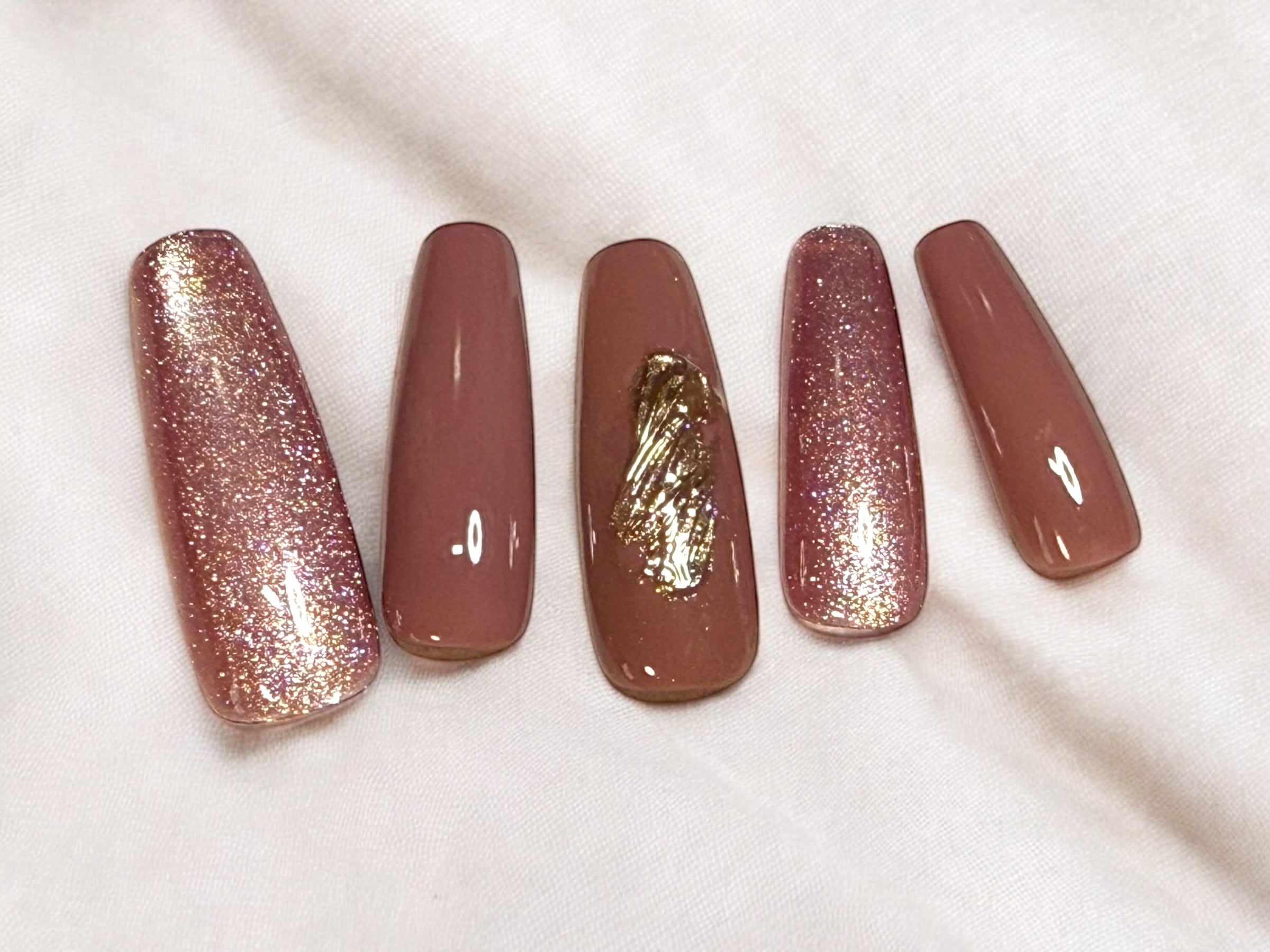 セミオーダータイプ【ネイルチップ】 マグネットネイル 【あずき色】 (見本:コフィンロング/チップの形選べます)