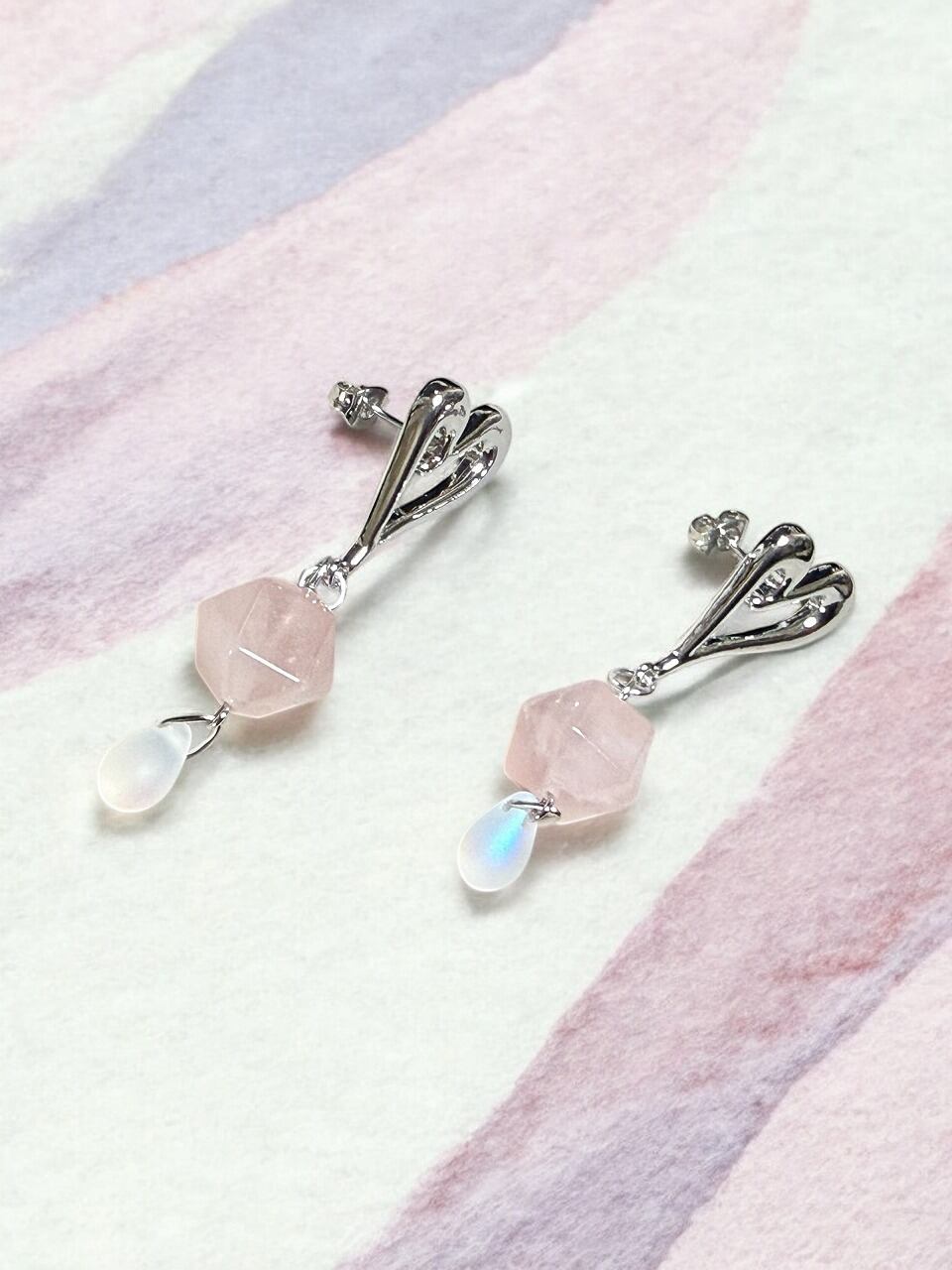 【ハート形ピアス/ステンレス316】 シルバー 【天然石ローズクォーツ】 サージカルステンレス仕様