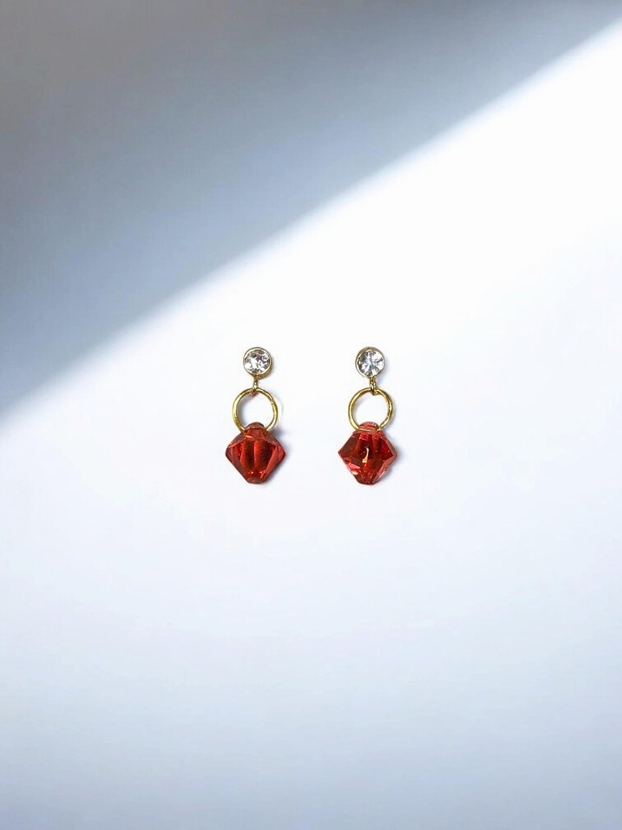 【ストーン付きデザインピアス/ステンレス】 ゴールド×パパラチャ 【1粒デザイン】 ※オプションにて樹脂、フックタイプに変更できます。