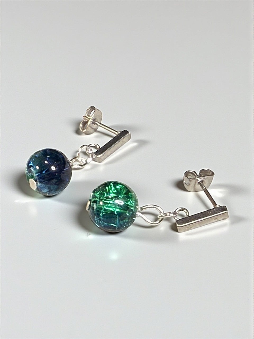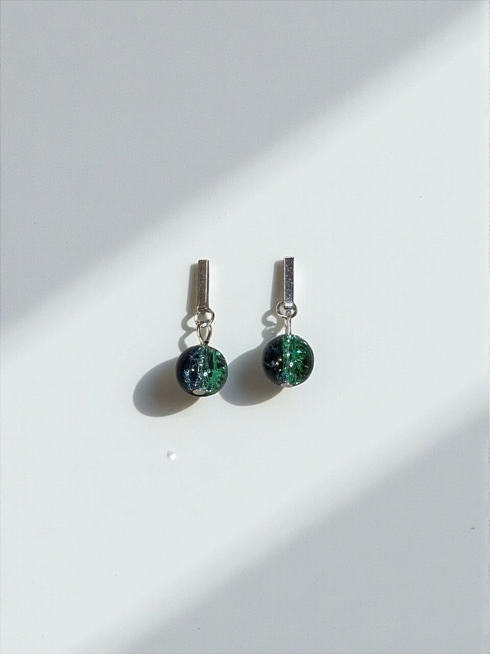 ・クラックガラスビーズ:ネイビー×ライトブルー 8mm