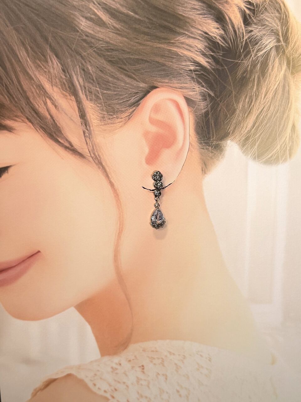 ※保管時またはご使用後は、イヤリング部分をティッシュや布などでふき取り、直射日光や湿気を避け、ケースに入れて保管する事をお勧めします(変色を避けるため)。