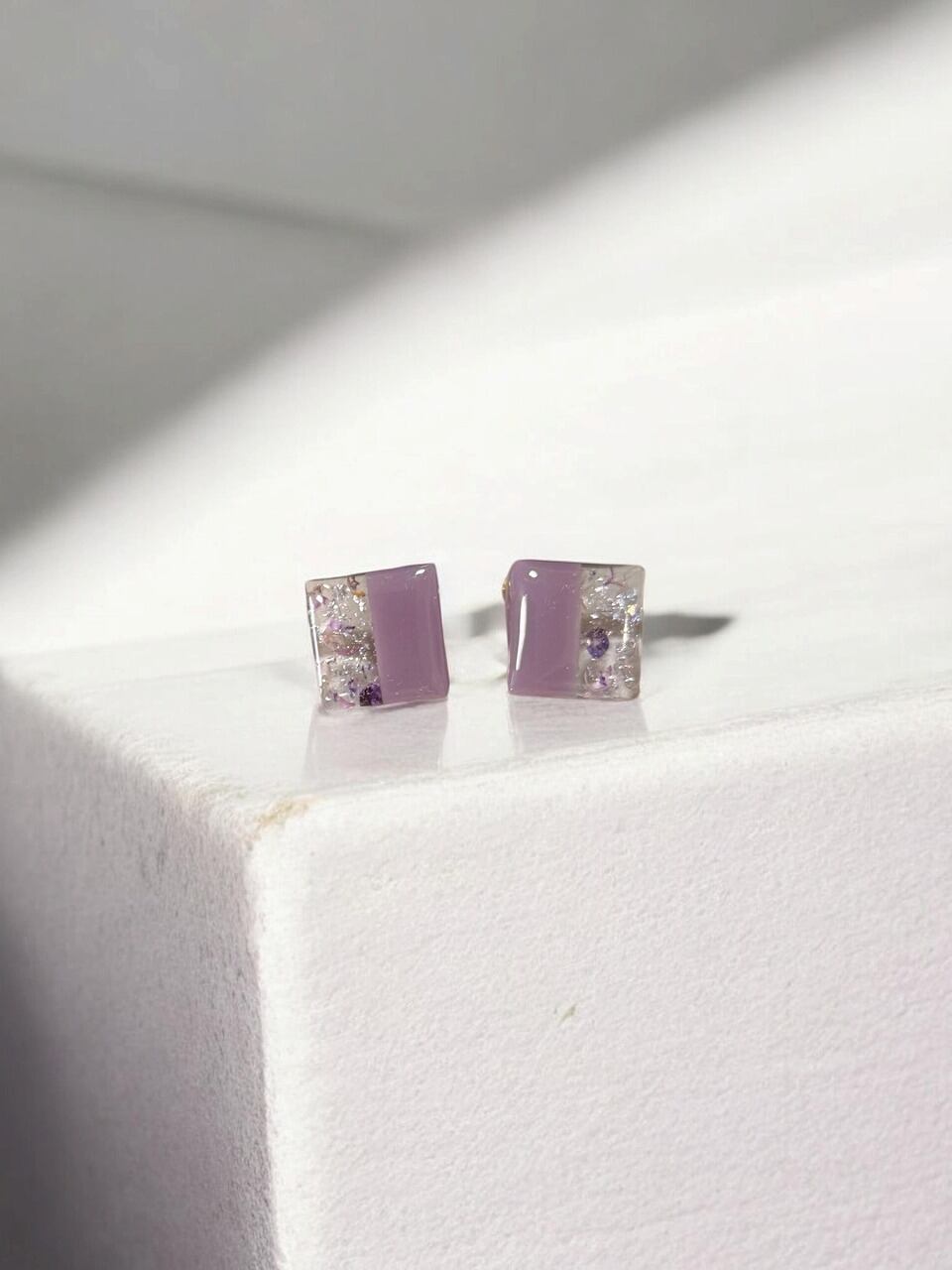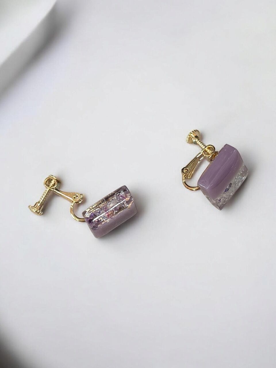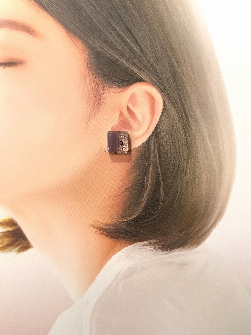 【イヤリング/ねじ式/ニッケルフリー加工】 スクエア 【パープル】 ×花びら