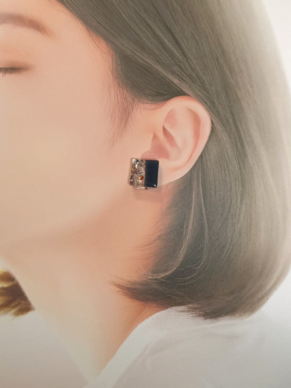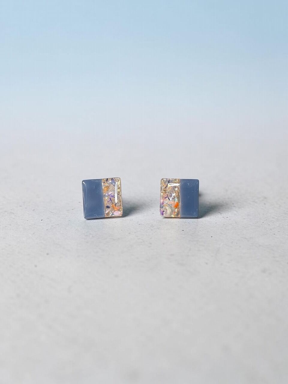 【イヤリング/ねじ式/ニッケルフリー加工】 スクエア 【インディゴブルー】 ×花びら