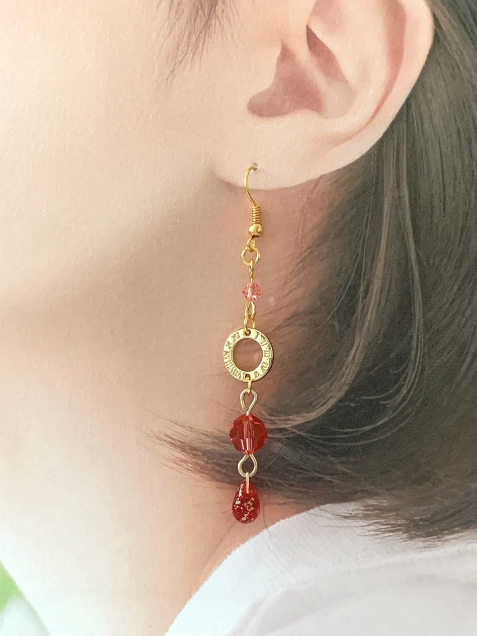 ピアス(イヤリング) ローマ数字リング 【レッド×ピーチ】 ロングアクセサリー