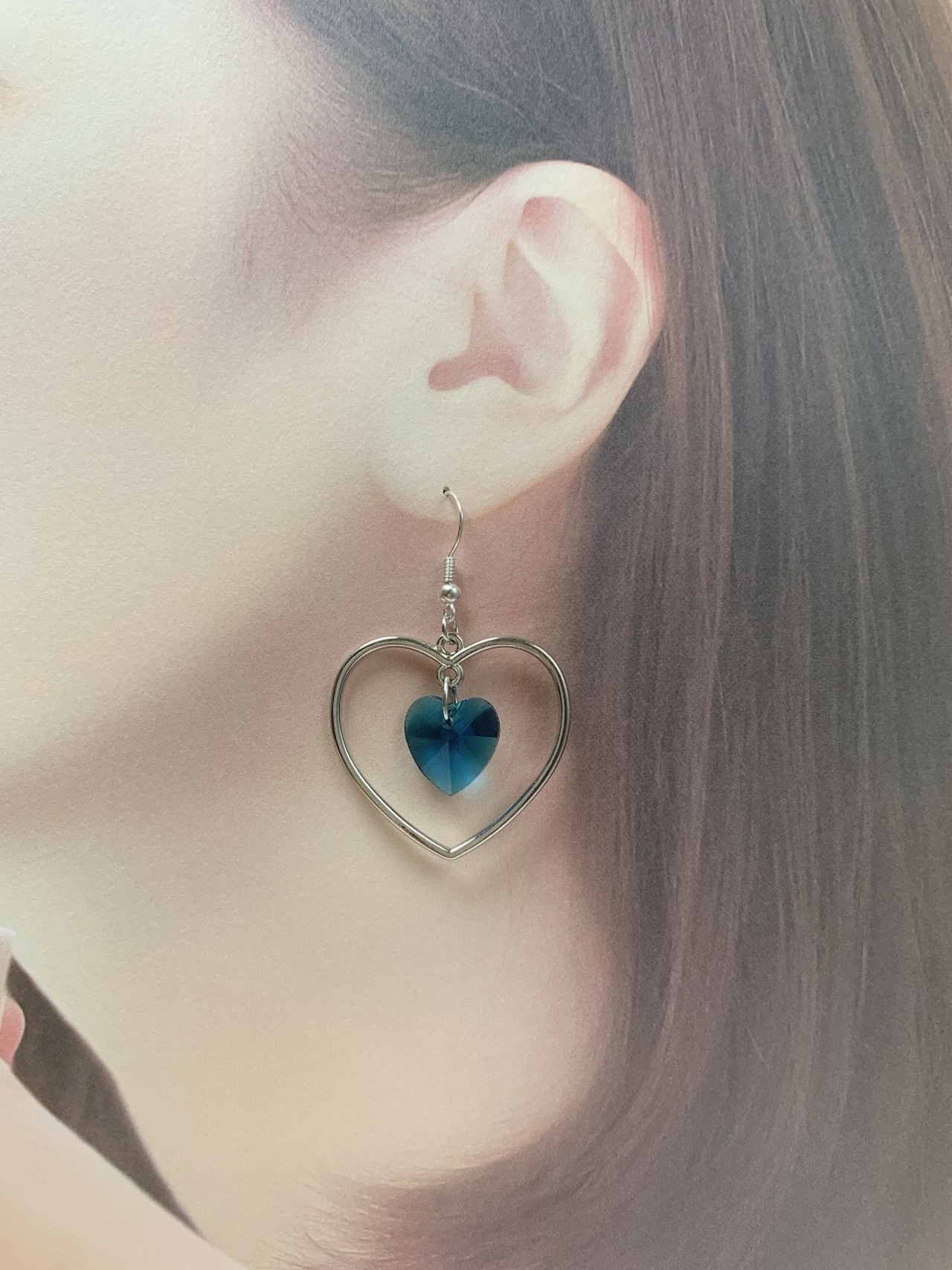 ピアス(イヤリング) 【ハートモチーフ】 ブルー×シルバー 大ぶりアクセサリー
