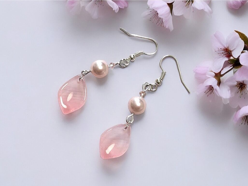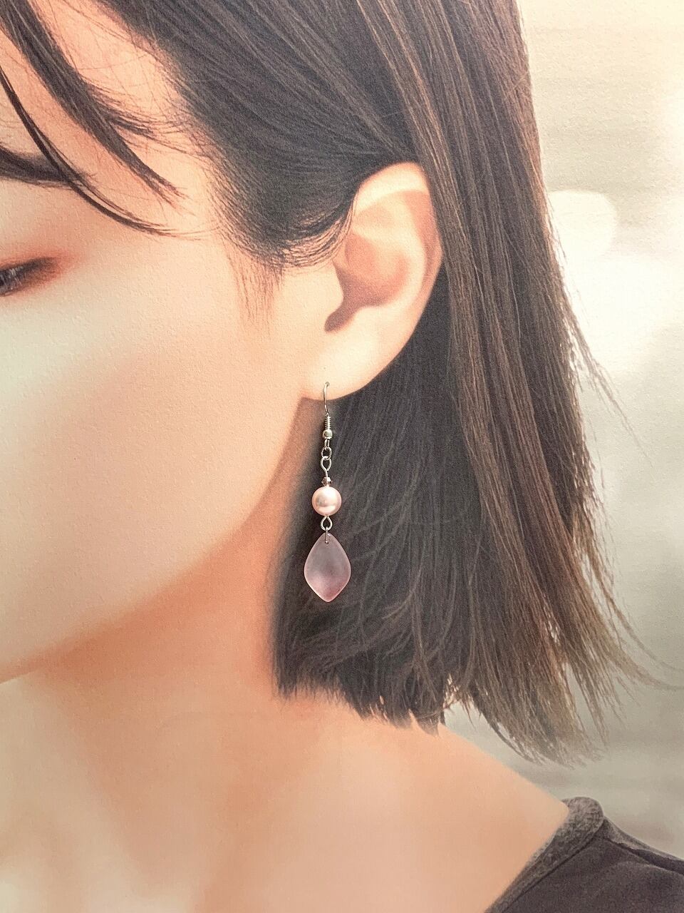 ピアス(イヤリング) 【花びら×クリスタルパール】(シルバー)