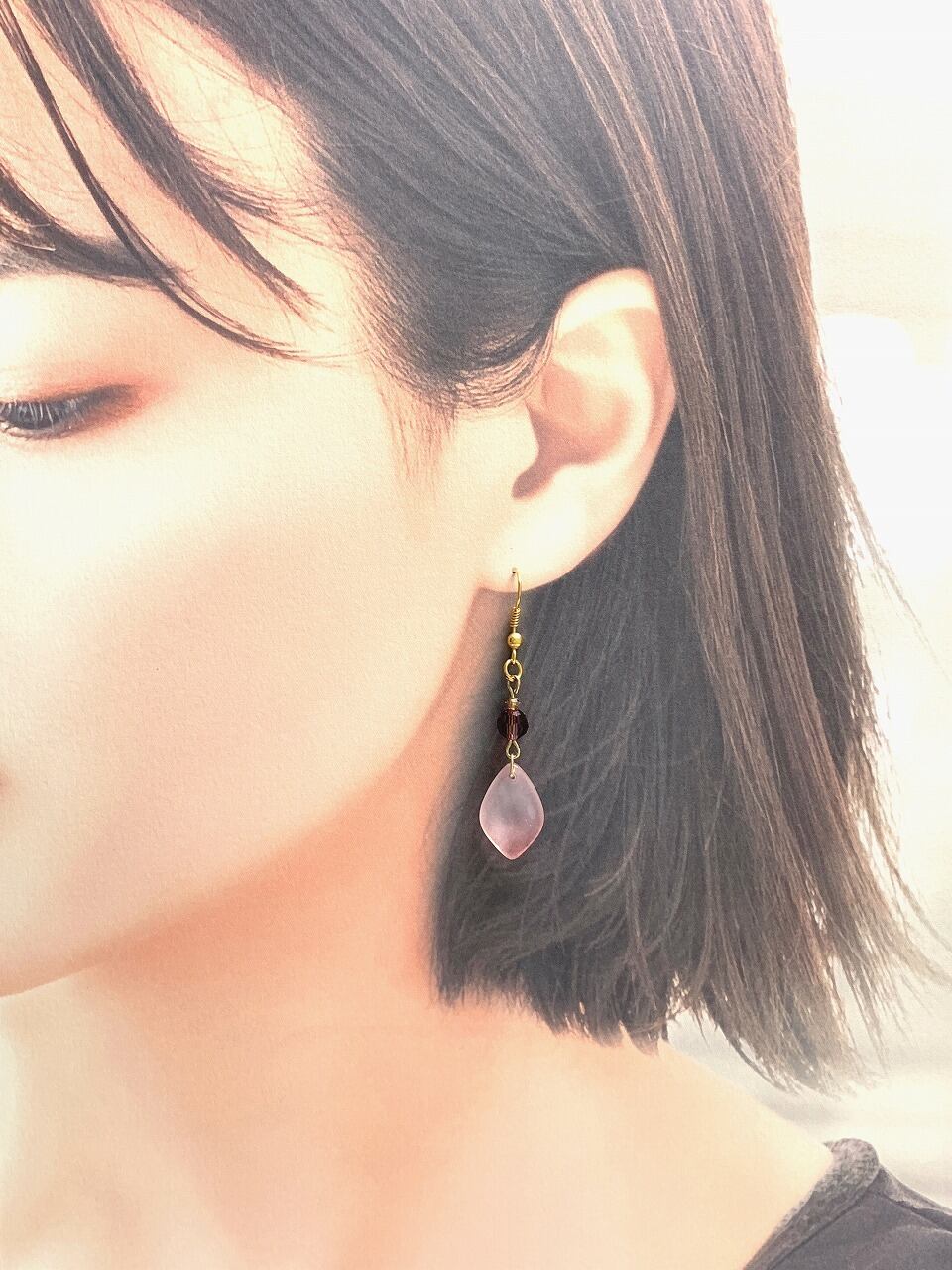 ピアス(イヤリング) 【花びら×アメジストパープル】(ゴールド)