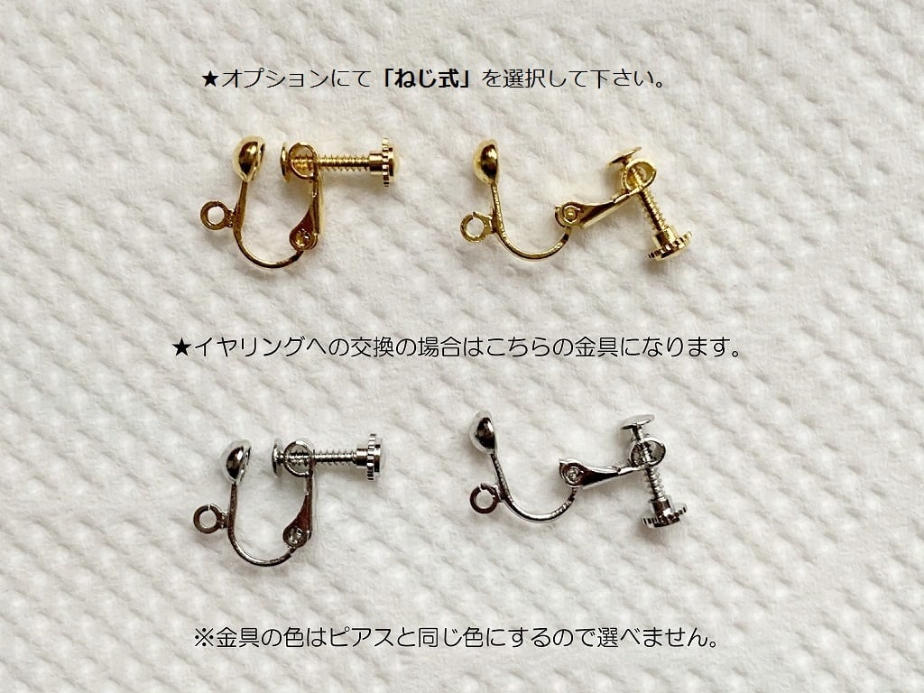 ※オプション選択にて各種イヤリング金具やアレルギー対応のその他ピアス金具への交換もできます。