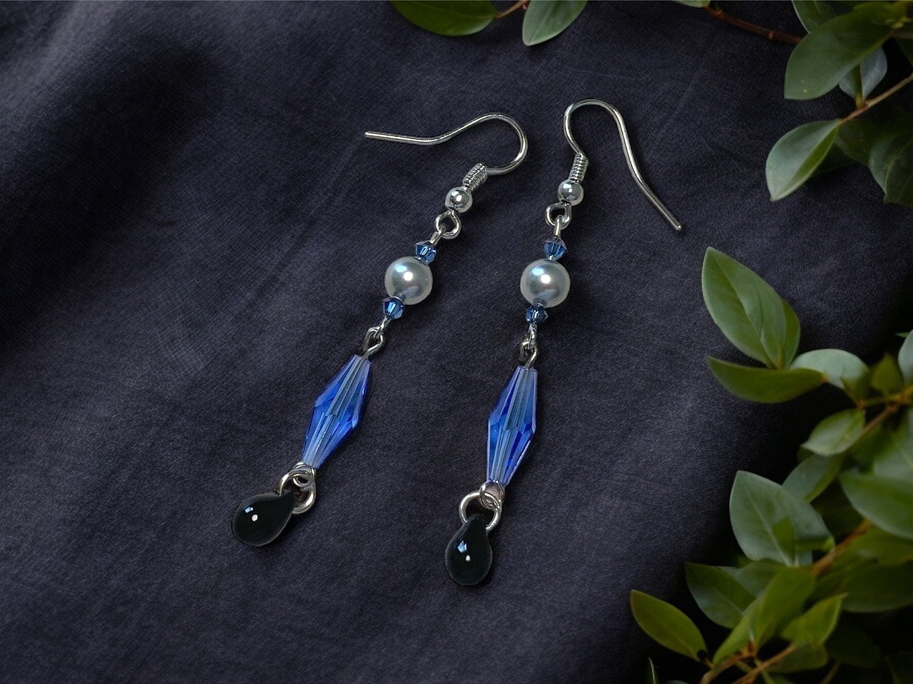 ピアス(イヤリング) ライトグレー×ブルー【クリスタルパール】