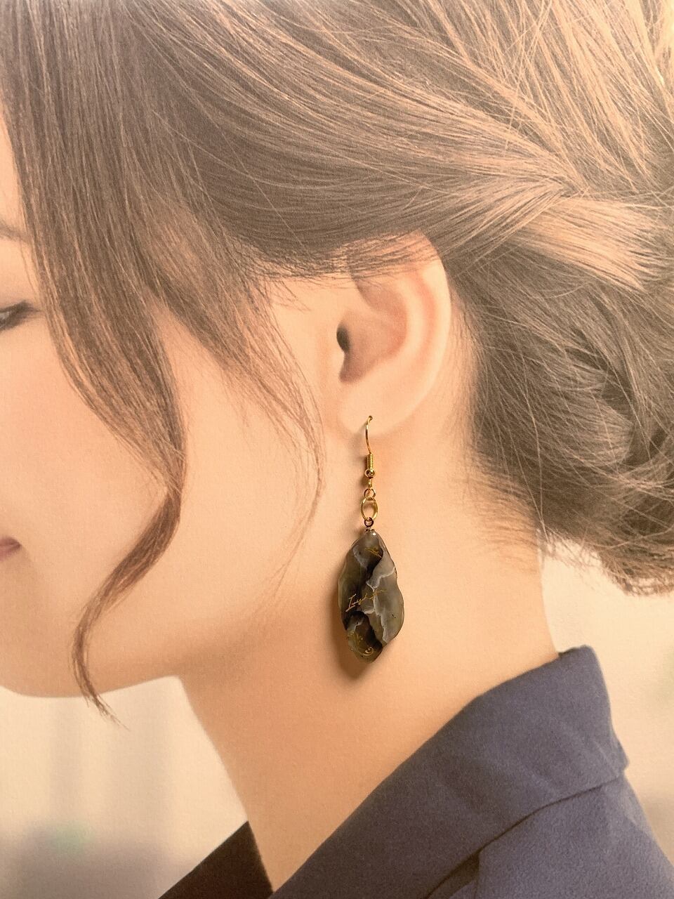 ピアス(イヤリング):ブルー&グリーンマーブルベース 【ストーン柄】
