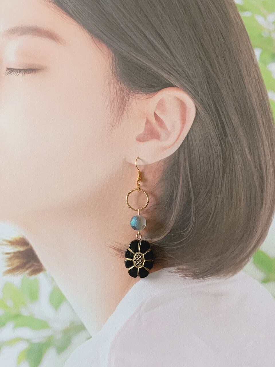 ・フラワーモチーフ 素材:アクリル ブラックとゴールド