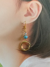 ピアス (イヤリング) 【水色×ゴールド】 フープ lot #40-3