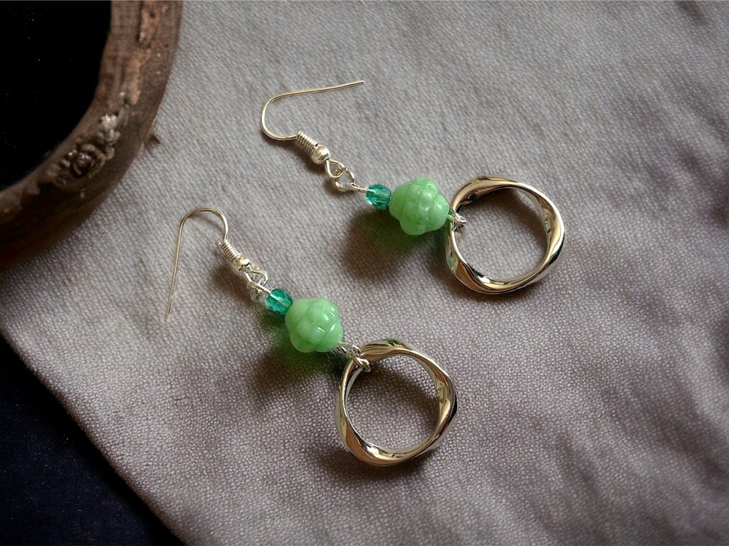 ピアス (イヤリング) 【グリーン×シルバー】 フープ lot #37-2