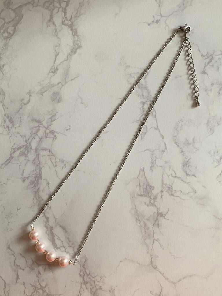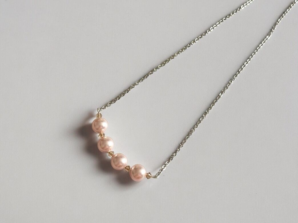 【ステンレス/ネックレス】 【クリスタルパール調】 ピンク×ブラウン