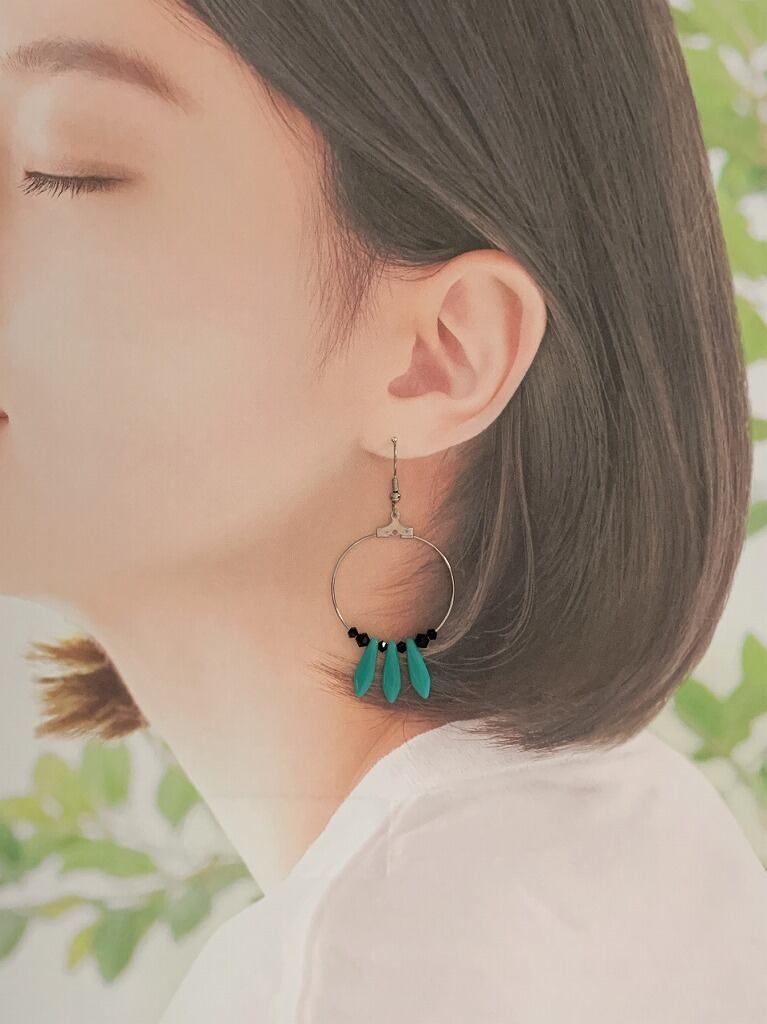 ピアス (イヤリング) ターコイズブルー × ブラック 【フープ】 lot #14-3